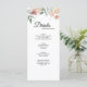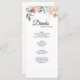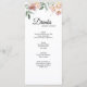 Este menú de boda floral rosa y malva ofrece un ambiente clásico de jardín antiguo para cualquier boda de primavera o verano. Los tonos rosas, como el rosa polvoriento y el rubor, combinados con la caligrafía elegante, aportan un toque elegante y formal al diseño, mientras que las flores lindas y las hojas verdes le aportan un elemento rústico y antiguo a la celebración del matrimonio.