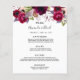 Una elegante carta de boda estilo bohemia. Lujosos rosas acuáticos, de color rosa y burdeos. Plantillas para los nombres, fecha y menú boda. Fondo blanco en el frente, borgoña en la espalda. Letras de color negro.