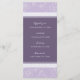Elegante menú para la cena de bodas con lavanda elegante, motivos florales morados y blancos oscuros, personalizable con los detalles de la cena, disponible en una amplia gama de productos bodas a juego.