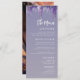 Encanta a tus huéspedes con un menú de Boda de fotos con flores moradas gradiente y capricho. Aumenta tu experiencia boda con este elegante y elegante menú. El diseño floral de color púrpura brillante sobre un suave degradado violeta crea un ambiente romántico y de ensueño. En la parte delantera del menú encontrarás un audaz título "El menú", seguido de una lista detallada de aperitivos, platos principales, postres y bebidas frías. En la parte trasera del menú se muestra una hermosa foto de la pareja, junto con sus nombres y fecha de boda. Este sofisticado y funcional menú es la manera perfecta de impresionar a sus huéspedes y realzar la estética general de su boda.