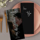 Foto de moda oscura superpuesta a texto de escritura de escritura de tipografía minimalista en blanco y negro y nombres caprichosos boda de la tarjeta de menú de plantilla de script. ++++++++ Personalízalo en la parte delantera y trasera!