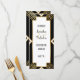 Un diseño elegante para Menús Bodas pero igualmente adecuado para (y personalizable para) las celebraciones del Aniversario del Boda Dorado y Aniversario del Boda de Diamantes. Este impresionante diseño geométrico audaz se inspira en el movimiento Art Decó de principios del siglo XX y en el Gran Gatsby.