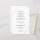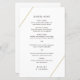 Menú boda geométrico moderno con dos líneas doradas, una en la parte superior izquierda y otra en la parte inferior derecha sobre un fondo blanco. Un diseño minimalista que todavía se presenta como moda y elegante. Estos menús baratos de boda se imprimen en hojas de papel para una opción económica.