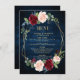 Boda geométrico borgoña azul marino oscuro con flores y un elegante ramo de azul marino, azul real, blanco, negro, burdeos, hojas de rosa marsala y eucalipto verde sabio y elegante marco geométrico neutro purpurina dorado. Comuníquese conmigo para obtener ayuda sobre la personalización o si necesita cualquier otro producto con este diseño.