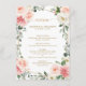 Elegante menú de boda botánico floral Rubor rosa / melocotón con un ramo de rosas de acuarela pastel, peonías e hidrangeas en tonos rosas, melocotones y crema con hojas botánicas verdes y exuberantes y hojas de eucalipto con marco geométrico dorado. Encontrará más diseños y variaciones de mi tienda "blissweddingpaperie". Y no dudes en ponerte en contacto conmigo para seguir personalizando o haciendo coincidir artículos.