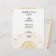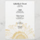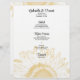 Personalizar el menú bonito del Boda gráfico de girasol amarillo con la lista de platos que se sirven en el almuerzo de verano o de la ducha nupcial, brunch boda de la cena de la recepción matrimonial con la ensalada o primer plato, entrante o segundo y postre o tercer plato. En la elegante carta boda de flores, realzada digitalmente con una fotografía floral de una flor de girasol de fondo blanco.