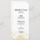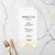 Personalice el menú bonito Boda gráfico de girasol amarillo con los detalles de la comida que se sirven en el almuerzo de verano o de otoño con ducha de novia, brunch boda o cena en la recepción matrimonial con ensalada o primer plato, entrante o segundo y postre o tercer plato. Personalízalo con los nombres de la novia y el novio, la ubicación del lugar de la recepción y la fecha del evento. Elegante menú personalizado de boda floral con girasoles amarillos adornando el fondo con un fondo blanco. Perfecto para la pareja que planea un verano informal pero elegante de junio, julio o agosto; setiembre, octubre o noviembre otoño o tema boda de girasoles.