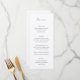 Menú boda de estilo clásico con un diseño sencillo con su monograma y el título en una caligrafía elegante.