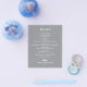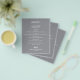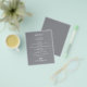 Este pequeño menú de cena gris es un papel a un precio asequible de 80 libras de peso y ofrece una selección de platos con letras blancas de moda. Perfecto para una recepción nupcial moderna, cena de boda, fiesta de aniversario o cualquier evento especial con una cena sentada. *Medidas de 4,5" x 5,6" (o elegir entre otros 2 tamaños). El servicio de diseño en vivo puede ayudarle con su diseño, tamaño o ajuste el color si es necesario.
