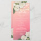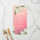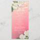 Plantillas de tarjetas de rack de menú boda - Elegante color de agua blanco adorable hidrángulos de flores y cadenas de luz sobre fondo degradado rosado. ¡Un Diseño Perfecto Para Tu Gran Día! Todos Los Estilo De Texto, Los Colores Y Los Tamaños Se Pueden Modificar Para Ajustarse A Sus Necesidades.