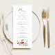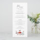 Carta de menú rústico boda para la cena con ilustracion acuático de setas y polillas.