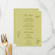 Carta boda ilustrada con cuadros y verde oliva, con tipografía de inspiración vintage y ilustraciones de higos dibujados a mano, un portavelas y un cherúb sosteniendo una copa de vino.