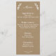 Menú boda kraft y rústico en tonos marrones y blancos con adornos: para una recepción sencilla y sobria.
