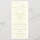 Presente a sus huéspedes sus selecciones de cena con este elegante menú de bodas, que complementa perfectamente su suite de papelería Verona Sunset. El fondo de marfil y las letras doradas crean un ambiente cálido y acogedor. Este menú es un detalle bonito y funcional que combina la decoración de la recepción y permite a los clientes saber qué es lo que les espera.