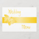cena boda menú de diseño mariposa de color amarillo. Puede personalizar este menú boda amarillo con los detalles de su boda. Si necesita ayuda para personalizar, póngase en contacto con nosotros a través del enlace de esta página. Diseño mariposa de colores amarillos menú de cena boda personalizado