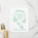 Menú boda con un diseño cardíaco de mariposas color menta. Puede personalizar este menú boda de color menta con los detalles de su boda. Si necesita ayuda para personalizar, póngase en contacto con nosotros a través del enlace de esta página. Carta boda personalizada de diseño de mariposas y corazón de menta