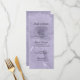 Personalizar el menú bonito marrón marrón Boda con los detalles de la comida que se servirán en el almuerzo de la ducha de novia, la recepción matrimonial o el brunch post boda añadiendo la ensalada o primer curso, entrante o segundo y postre o tercer curso. Personalízalo con los nombres de la novia y el novio, la ubicación del lugar y la fecha del evento. En esta elegante carta personalizado de boda botánico se puede apreciar una fotografía floral realzada digitalmente de una flor margarita en el tallo, en un jarrón de cristal con un matiz de color morado eslavanda claro.