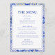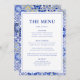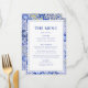 Transporta a sus bodas invitados al corazón de México con nuestro menú boda con temática de Blue Talavera. Este elegante y moderno diseño, inspirado en la belleza de la cultura hispano-mexicana, le da un toque de encanto exótico a su celebración de bodas de destino. Personalice su menú para ofrecer deliciosos platos que deleitarán a sus seres queridos e infundirán a su boda con los vivos tonos y la riqueza cultural de una fiesta española. Con este elegante y único menú, su celebración será una fiesta que recordar, combinando elegancia y tradición en un paquete delicioso.