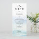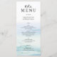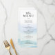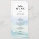 Añada este menú a su decoración boda. Esta impresionante colección de diseño de bodas acuáticas de color mínimo presenta un océano sereno pintado a mano que captura perfectamente la tranquila belleza del mar. Con olas suaves y fluidas en delicados tonos azules y verde azulados, y fuentes elegantes y sobrias, este diseño desprende una sensación de calma y sofisticación. La sencillez del diseño lo convierte en una moda sin esfuerzo, ofreciendo un ambiente moderno pero atemporal que resonará en todo aquel que sueñe con una celebración junto a la playa. Las delicadas acuarelas y el estilo minimalista crean un ambiente refinado y romántico que complementa la belleza natural de cualquier entorno de playa. Perfecto para las parejas que buscan fusionar elegancia con el encanto relajado de un boda costero, esta colección sin duda impresionará a los huéspedes y marcará el tono para un evento memorable y pintoresco. Es la elección ideal para las parejas que desean una estética boda que refleje su amor por el océano y la belleza de la sencillez. Vea toda la colección para ver más elementos coincidentes.