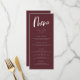 Carta de menú boda minimalista moderna para la cena con letras de boho. El color de fondo está en rojo alegre con textos blancos.