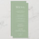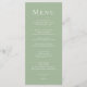Rellene la escapada de la mesa de la recepción de bodas con este menú Boda Minimalista Sage Green Modern. Diseñada con un suave fondo verde sabio y una tipografía refinada, esta carta combina elegancia y simplicidad para un aspecto atemporal y moderno. Con una combinación de suero limpio y delicados tipos de letra, presenta con gusto sus platos bodas. En pleno personalizable, la carta es perfecta para bodas de inspiración natural, rústica o contemporánea.