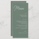 Sumérjase en una sofisticada sencillez, donde el minimalismo moderno se combina con la elegancia matrimonial. Perfecto para la recepción de bodas, este menú combina una paleta verde sabia única con un guión sencillo y elegante. Inspira deleite en tus invitados con cada detalle, desde tu historia de amor hasta el último curso. ¡Que su fiesta de bodas sea también una fiesta inolvidable para los ojos!