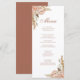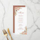 Este menú de boda presenta flores de hierba de las pampas con un respaldo de terracota coordinado para un look boho moderno y cálido. Perfecto para mesas de recepción en bodas al aire libre, rústicas o bohemias. El diseño vertical destaca claramente cada plato mientras mantiene una estética elegante y aireada. La paleta neutral cálida refleja las tendencias 2025–2026 centradas en texturas naturales y tonos lavados por el sol. El texto totalmente personalizable te permite presentar tu menú de manera hermosa. Un detalle de mesa refinado que completa tu suite de boda de hierba de las pampas.