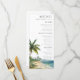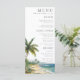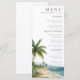 Este menú de boda con escena de palma de playa con acuarela moderna y elegante se puede personalizar con su información en tipografía chic. Diseñado por Thisisnotme©