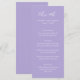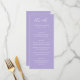 Menú de boda moderno con un diseño tipográfico contemporáneo que incluye "vamos a comer" en tipografía de letra cursiva elegante. A continuación, se muestran los detalles de su evento con sus nombres, fecha de la boda y menú en un diseño simple y minimalista. El tema de color es el púrpura pervinca y se puede cambiar con la herramienta de edición de diseño.
