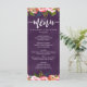 Menús Boda Floral de color de Moda con colores de agua que se pueden editar en el florecimiento. Con el estilo de letra de guión de pincel de moda! ~ Cambie fácilmente el color de fondo de la acuarela, haga clic en "Personalizar" Desplazarse hacia abajo a través del texto y las imágenes hasta que vea el área de color de fondo y seleccione su color personalizado. Asegúrese de hacer clic en el "reverso" y hacer lo mismo.