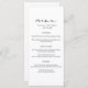 Menús bodas minimalistas con el título "menú" en color negro moderno. Edite con sus nombres, fecha de boda y menú en letra negra. Haga clic en "personalizar más adelante" para ajustar el diseño.