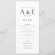 Menú Boda Monograma de parejas modernas en blanco y neg