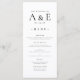 Menú Boda Monograma de parejas modernas en blanco y neg