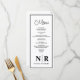 Presentamos nuestros menús de la cena o la recepción en monograma de Boda blanco y negro, el epítome de la elegancia atemporal y la sofisticación personalizada para su ocasión especial. Elaborados con meticulosa atención a los detalles, estos menús le dan un toque de refinamiento a cualquier recepción de boda, cena de ensayo o fiesta de compromiso. La combinación clásica de blanco y negro proporciona un entorno limpio y sofisticado, lo que permite que su monograma boda personalizado brille. Adaptados a sus especificaciones, nuestros elegantes menús de bodas muestran su cuidada selección de platos, asegurando que cada plato se presente con estilo y gracia. Ya sea que esté planeando una reunión simple e íntima o una aventura suntuosa, nuestros menús de la cena de recepción o compromiso son el complemento perfecto para su celebración. Póngalas con nuestras tarjetas de lugar de coordinación para crear una apariencia cohesiva y pulida que impresionará a tus invitados y dejará una impresión duradera. Elevar su evento con nuestros menús de la cena o recepción de monograma de Boda blanco y negro, donde la elegancia se encuentra con la personalización para una experiencia verdaderamente inolvidable.