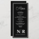 Presentamos nuestros Menús de Recepción o Cena de Monograma de Boda Blanco y Negro, el epítome de la elegancia atemporal y la sofisticación personalizada para su celebración especial. Elaborados con meticulosa atención a los detalles, estos menús elevan la recepción o la cena con un diseño en blanco y negro depurado, creando un ambiente refinado que complementa cualquier estilo de decoración. Personalice cada menú con su propio monograma boda, añadiendo un toque a medida que refleje su historia de amor única y que marque el tono para una experiencia inolvidable. Ya sea que usted esté organizando una cena de ensayo íntima, una fiesta de compromiso o una espléndida recepción nupcial, nuestros elegantes y sencillos menús bodas le proporcionan el toque final perfecto a su mesa. Póngalas con nuestras tarjetas de lugar para completar el aspecto y crear una estética cohesiva que deje una impresión duradera a tus huéspedes. Celebra el amor, la risa y los momentos apreciados con nuestros menús de la cena o recepción de monograma de Boda blanco y negro, una bella adición a tu día de bodas que es tan atemporal como tu amor.