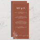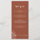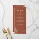 Moderno Menú Boda Boho Floral Terracotta Quemada Naranja. Monograma detrás.