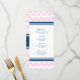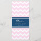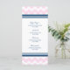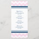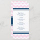 Elegante menú para la cena de bodas en elegantes tonos rosa pastel, azul marino oscuro y trazo retro de chevron blanco, personalizable con los detalles de la cena, disponible en una amplia gama de productos bodas a juego.