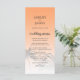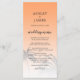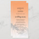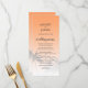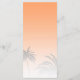 Elegante menú de bodas de destino con un diseño tropical de palmeras en un brillante fondo naranja con un guión elegante y una tipografía moderna. El naranja de papaya desaparece en un fondo blanco. Simplemente añada tus detalles bodas a este elegante menú de bodas de playa tropical. Diseñado exclusivamente para usted por Happy Dolphin studio.
