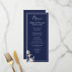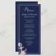 Hermosa y elegante carta de boda con temática náutica, costera o playa, con ancla náutica acentuada por las flores acuáticas en azul marino, melocotón, azul claro y blanco, con letras elegantes y tipografía de guión de caligrafía para el título y texto en blanco contra un color de fondo azul marino. ASISTENCIA: Para obtener ayuda con la modificación o personalización del diseño, el cambio de color, la transferencia del diseño a otro producto o desea coordinar elementos, póngase en contacto con el diseñador ANTES DE PEDIDOS a través de la pestaña MENSAJE de chat de Zazzle o envíe un correo electrónico a makeitaboutyoustore@gmail.com.