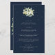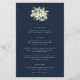 Un oscuro menú boda de tres platos de la marina, con un ramo/poste de nevadas pintadas a mano y eucaliptos en la parte delantera y una corona en la parte trasera. Todo el texto es completamente editable, y los puntos dispersos en la parte delantera y trasera se pueden borrar antes de pedir si lo prefiere. Por favor, vea esta colección en mi tienda para menús con arreglos florales alternativos, un número diferente de cursos y en diferentes tamaños, colores y formas. También hay elementos de coordinación disponibles.