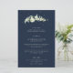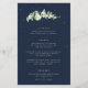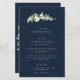 Un oscuro menú de bodas de invierno de tres platos de la marina, con un tallo de nevadas pintadas a mano y eucalipto en la parte delantera y una corona en la parte trasera. Todo el texto es totalmente editable y los puntos dispersos en la parte delantera y trasera se pueden borrar antes de pedir si lo prefiere. Por favor, vea esta colección en mi tienda para menús con arreglos florales alternativos, un número diferente de cursos y en diferentes tamaños, colores y formas. También hay elementos de coordinación disponibles.