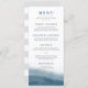 Coloca estas elegantes tarjetas de menú en cada lugar para darle un toque bonito a la recepción de tu boda. Moda costera, diseño náutico con letras grises y azul marino con nombres y fecha boda en la parte superior, y un elemento acuarela en el fondo de azul marino rico. Se coordina con nuestra colección de invitaciones para bodas de Ocean Tides, perfecta para su playa o boda de verano. Utilice los campos de plantilla para agregar la información del menú y, a continuación, haga clic en "Personalizar" para cambiar la posición de los elementos si fuera necesario. ¿Necesitas ayuda? Contáctame a través del enlace "Preguntar a este diseñador" en esta página.