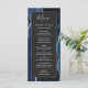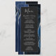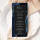 Elegante y moderno menú boda con un fondo de ágata color azul marino adornado con purpurina de imitación plateado. El texto aparece en una elegante letra gris plateado y sans serif tipografía en un rectángulo fuera de negro. El diseño de agate se repite al revés.