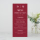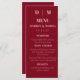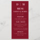 Establece el tono de la recepción con estas tarjetas de menú manuscritas de boda rosa y roja personalizada. Con un elegante guión de escritura a mano en rojo audaz y rosa suave, estos menús personalizados son perfectos para bodas, cenas de ensayo, duchas de novias y celebraciones de compromiso. Personalizar con sus nombres, fecha de boda y detalles del menú para crear un diseño muy bien coordinado que realce su decoración de mesa. Un detalle romántico y práctico que sus huéspedes podrán admirar y recordar.