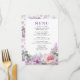 Flores de color morado y rosa de color agua elegantes tarjetas de menú