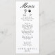 Una vintage carta retro funky y moderna para la cena en negro y crema boda. Que presenta diseño de plantillas de moda de fondo blanco y tipografía escrita a mano negra. Con vino tinto Hand y copas de champán en la parte delantera. Y Hand dibujó pastel en la espalda. Una perfecta y a juego con la suite.