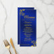 Menús bodas con temática floral reales azules y amarillos dorados adornados con un estilo formal. Personalice estos menús de boda de clase con sus propios detalles de comida y bebida.