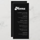 El elegante menú retro negro y blanco Boda aporta elegancia a la recepción, con su elegante paleta monocromática y su diseño de inspiración vintage que complementa a la perfección los bodas modernos y clásicos. Diseñado con el objetivo de realzar los platos escogidos en un formato claro y sofisticado, este menú no sólo ayuda a los comensales a disfrutar de su experiencia, sino que también realza la decoración general de la mesa con su tipografía retro de moda. Su equilibrio de estilo y función hace que sea más que una guía de la comida, se convierte en un detalle memorable que une el tema boda y añade un toque de acabado pulido a cada lugar.