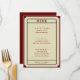 Menú de boleto de película retro 5x7 para un boda, fiesta de cumpleaños u otro evento. Una combinación de colores marrón y burdeos. Personalízalo añadiendo tu propia lista de comidas y detalles de eventos.