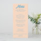 Un colorido menú retro funky moderno para la cena boda amarillo melocotón. Que presenta el diseño de plantillas de moda de fondo boho de durazno vintage y tipografía en negrita azul. Perfecto y a juego con la suite.